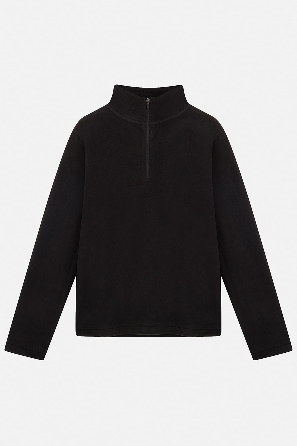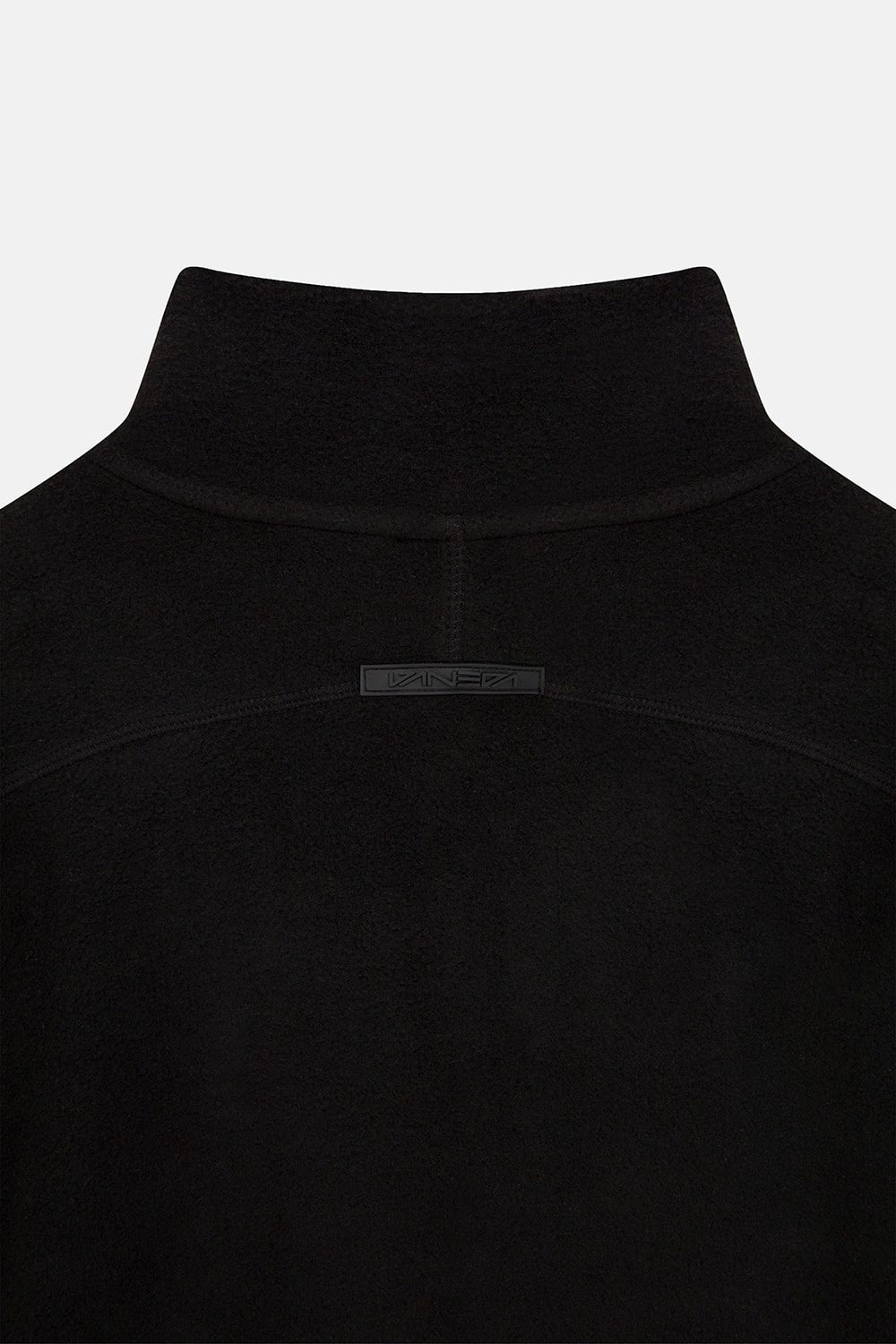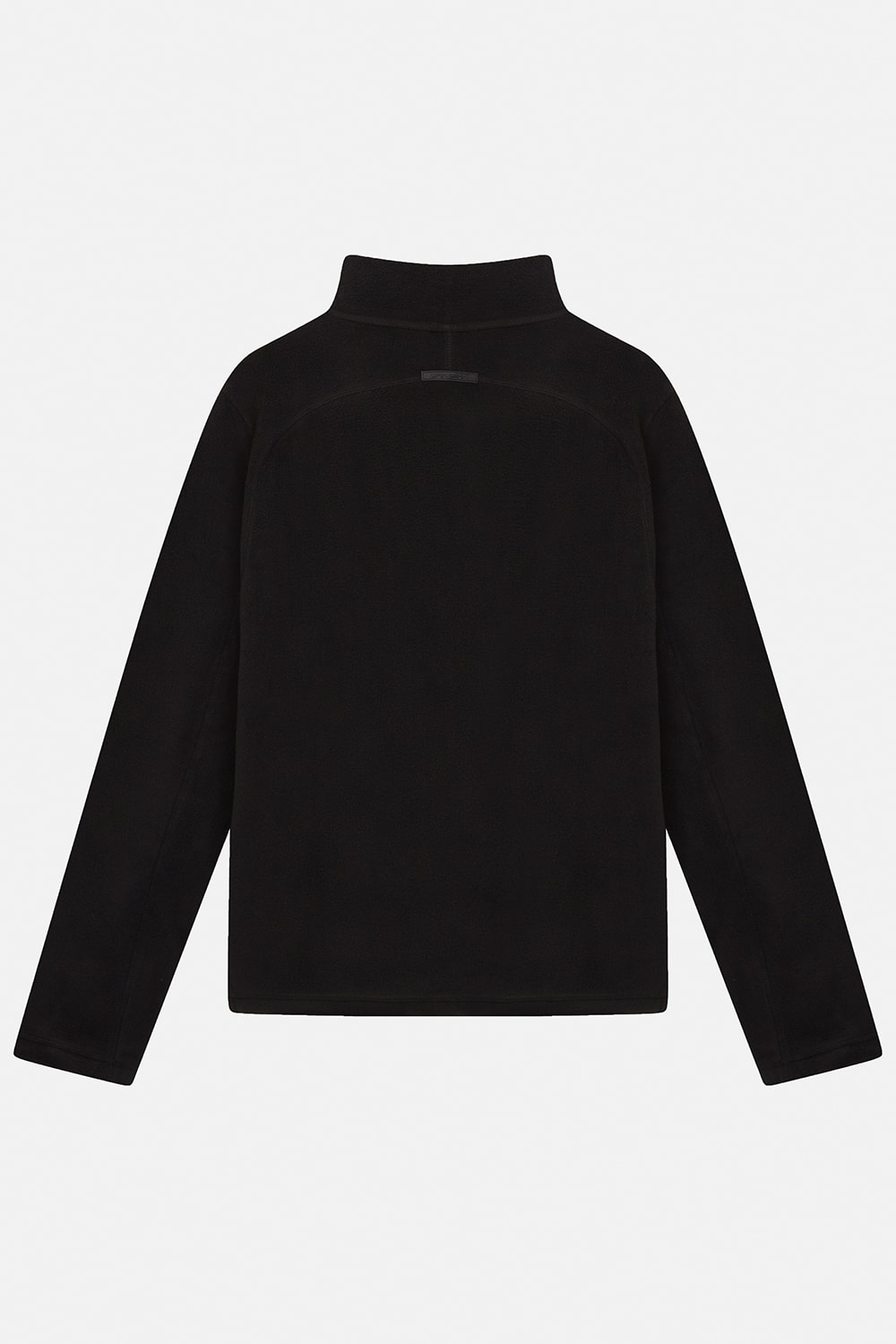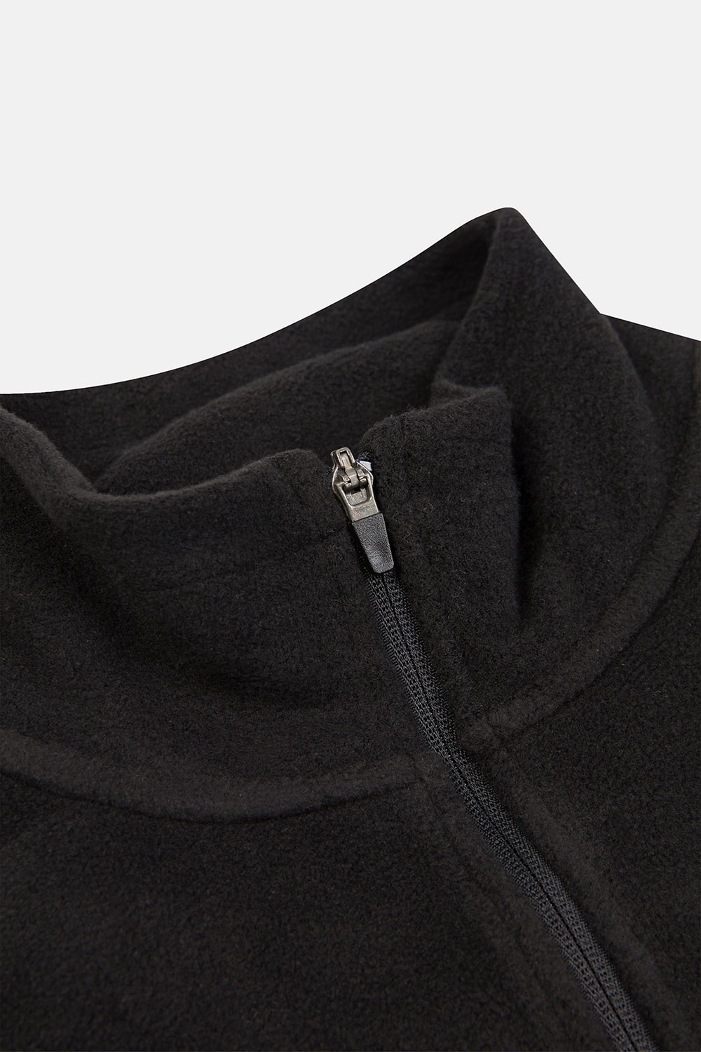 Karyoka dikiş detaylı, siyah polar kumaştan 3/4 fermuarlı vücut ısıtıcısı.